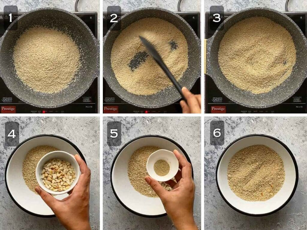 Tip: Always use fresh and soft jaggery, so that the laddu binds well.